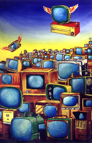 Art reflects the time and place it was created. In the past that might mean landscapes or seascapes. For my generation its the TVscape.